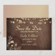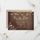 Anuncie seu dia especial com este charmoso cartão Save the Date rústico, apresentando textura de grãos de madeira, luzes de corda brilhantes e elegantes acentos florais em ouro. Com uma aparência aconchegante e romântica, este cartão define o tom perfeito para casamentos de outono ou inverno, recepções em celeiros ou celebrações boho.