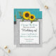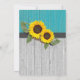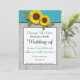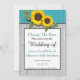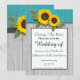 Convite de Casamento Rústico Ciano Madeira, Girassol Dourado charmoso moderno country, Perfeito para os casamentos deste ano