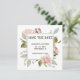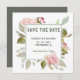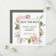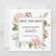Casamento Salve a data Rosas cor-de-rosa desenhadas com design floral de cor-de-água macia de Rosas Rosa e Acentos Verdes. O texto inclui: Salvar a data, os primeiros nomes da noiva e do noivo, a data de casamento, o local e o convite formal a seguir. O verso é um fundo verde correspondente. Para personalizar simplesmente insira seus detalhes em nosso modelo fácil, substituindo o texto de exemplo. Disponível em impressão e download.