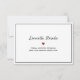 Comemore sua noivado com esses cartões de frente duplos personalizados "salve a data". Na frente, esses elegantes cartões brancos e pretos mostram sua foto, junto com os nomes da noiva e do noivo, sua data de casamento e um calendário mensal (que você pode personalizar) para lembrar seus convidados. Eles também incluem um pequeno coração de cor d'água bordados e um "círculo de datas" para circundar a data do calendário. No verso, eles incluem espaço para a sua localização de casamento e mais texto, como as palavras "convite formal para seguir" e o seu website. DICA: Para circundar uma data de calendário diferente, depois de preencher todos os outros detalhes, selecione "personalizar/personalizar ainda mais". O CÍRCULO DATA é a imagem superior. Selecione e mova para a data do casamento. Você também pode redimensioná-lo ou reorganizar e excluir outros elementos. PARA OBTER ASSISTÊNCIA: Entre em contato com o armazenamento WanderingBark e escolha "solicitação de design." Estou feliz em personalizar o calendário para você!
