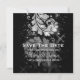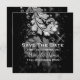 Design de casamento elegante "Salve a Data" com o romântico Silver Glitter Floral Swirl efeito noite céu estrelado sobre o fundo Silver, e nomes personalizados, texto de data e monograma decorativo. Imprima sua família e amigos com este na moda e design moderno. Totalmente personalizável! Fácil de usar e fácil de personalizar. Peça a sua hoje!