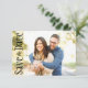 Mande o anúncio "Salvar a data" para o seu casamento de outono em cores prontas para a estação. O design frontal apresenta sua foto e folhas coloridas do outono rústicas no verso com os detalhes. Personalize o texto nos campos modelo ou clique em personalizar para selecionar um estilo de tipo, tamanho e cor preferidos.