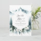 O Simple Pine Mountain Wedding salva o cartão de data captura a beleza da natureza com seu design limpo com gráficos encantadores de pinheiros. Ideal para casais que querem um anúncio simples, mas elegante, este cartão exude calor e tranquilidade. Totalmente editável e disponível para download instantâneo, você pode personalizar facilmente todos os detalhes on-line para refletir seu estilo exclusivo. Este cartão de salvamento digital convida seus hóspedes para uma celebração encantadora no meio do pano de fundo sereno das florestas de pinheiros e montanhas.