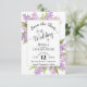 Este casamento para salvar o cartão de data é simples, rústico, elegante e bonito. Ele apresenta um design tipográfico com caligrafia de script de legado em um quadro branco cercado por um bando de flores lilás pintadas manualmente em um fundo branco. O título diz: Salve a Data na caligrafia de script lacy com espaço para os nomes do casal, a data e o local. A parte de trás é uma cor de lavanda pálida com um buquê pequeno amarrado com um arco branco. Uma maneira maravilhosa de deixar seus amigos e família saberem sobre seu próximo casamento.