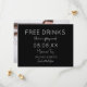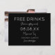 Casamento engraçado salve os cartões de data em um simples design de texto preto e branco que diz "Bebidas grátis (e vamos nos casar)". Personalize com seus nomes, local do casamento e data. O verso da placa apresenta sua foto favorita em um layout horizontal.