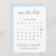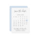 Moderno salve o cartão de data com um calendário simples em cinzas suaves com as palavras "Salvar a Data" e seus nomes em uma letra elegante de letra de letra e um coração azul pastel em volta de sua data, sobre um fundo branco. A parte de trás é uma sombra de azul correspondente. DESIGN DICA: para uma coluna que não tem uma data na primeira linha (semana), adicione um espaço antes do primeiro número. Se precisar de assistência para personalizar o calendário, por favor sinta-se à vontade para me contactar através do botão "contato".