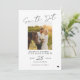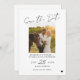 Um casamento com um roteiro moderno de caligrafia simples preto e branco, minimalista e preto, salve o cartão de data com fotos de noivado personalizadas. ++++++++++ Adequado para casais informais de praia de Verão em zonas costeiras. +++++++++ Fácil de personalizar com suas fotos, detalhes e site em ambos os lados.