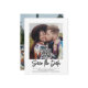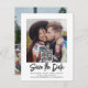 Anuncie a alegre notícia do seu noivado e do próximo casamento com fotos personalizadas únicas, salve os convites de data. As 2 fotos, o código QR digitalizável e todos os textos neste modelo são simples de personalizar, incluindo o script que pode ser alterado para "Salvar nossa data." (DICA DE PLACEMENTO DE IMAGEM: Uma maneira fácil de centralizar uma foto exatamente como você deseja recortá-la antes de carregá-la no site do Zazzle.) O design preto e branco apresenta duas imagens do casal engajado, caligrafia manuscrita de tendências e tipografia moderna minimalista. Ao digitalizar o código QR com seus telefones, os convidados são enviados diretamente para o site do casamento onde eles podem ver todos os detalhes importantes e se conectar com você on-line. Este cartão de nota de na moda é uma maneira elegante de informar amigos e familiares sobre sua próxima celebração especial. Parabéns para a noiva e o noivo!