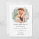 Casamento Simples e Russo Salve o Cartão com fotos de Data com ilustração floral de cor d'água com coroa verde de oliveira. Isto é perfeito para eventos de primavera, verão e praia. Para personalização mais avançada deste design, clique no botão "Personalizar" acima! Itens correspondentes também estão disponíveis.