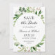 Moderno Green Leaves Wreath Elegante Simples Casamento Salve o Cartão de Data.