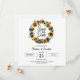 Convite de casamento simples e moderno com um belo grinalda de girassol e fundo branco. Personalize com um código QR no verso para que os convidados possam facilmente abrir o site do seu casamento.