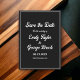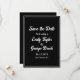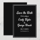 Faça uma declaração com este convite de casamento preto e branco atemporal e clássico para salvar a data. A tipografia branca ousada em um fundo preto cria um contraste marcante e um visual único. Perfeito para casamentos, noivados e outras ocasiões especiais, este convite causará uma impressão duradoura. O design simples, porém elegante, certamente se destacará entre os demais.