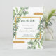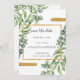 Design apresenta bordas suculentas de Aquarela eucalipto com salpicos de ouro pintados nos cantos, aquarelas em tons de verde. Corresponder itens disponíveis na coleção