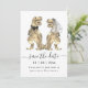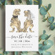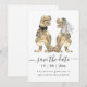 Torne o seu casamento inesquecível com este caprichoso cartão "Salve a Data" temático de dinossauros, apresentando uma noiva e um noivo T-Rex!