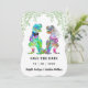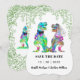 Delicie seus convidados com este divertido convite de casamento de dinossauros para salvar a data com noiva e noivo T-Rex coloridos com folhagem florestal em aquarela. Fácil de personalizar com os nomes da noiva e do noivo dinossauros e a data do casamento. Ilustrações coloridas de noiva e noivo Tyrannosaurus Rex em aquarela com tipografia moderna. Arte original única de dinossauros do Jurássico pela artista Catherine Sweetman
