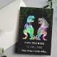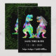 Casamento Divertido de Dinossauros - Salve a Data - Noiva e Noivo T-Rex com Folhagem Florestal