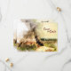 Este anúncio de casamento "Salvar a Data" apresenta um belo conjunto de árvores tribais de cor d'água contra um fundo cênico. No verso acima do texto, há uma flecha com coração e vinha.