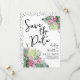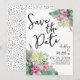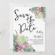 Um design tropical que abraça a beleza tranquila da natureza misturada com uma pitada de diversão que certamente ajudará a se divertir. Uma mistura de folhas tropicais verdes calmantes, incluindo folhas de bananeira, palmeiras, folhas de monstera e plantas princesa rosa, ao lado de flores de orquídea roxa-rosa e flores de protea, entrelaçadas com outras folhagens. Adicionando um elemento de diversão, um fundo preto com "pontos bagunçados" ou "pontos dálmatas" nas costas infunde o design com um toque lúdico (você pode remover se quiser). Melhorado por uma fonte manuscrita moderna, essa impressão encantadora irradia charme e sofisticação. Esse design versátil traz um senso de paraíso tropical para qualquer ambiente ou ocasião especial, tornando-o perfeito para um casamento de destino ou apenas quando você deseja adicionar um toque tropical. Casamento Floral Tropical com Aquarela de Palma Verde Rosa Save the Date