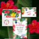Este casamento salvou a data com folhas de palma tropical aquarela, hibisco rosa, flores tropicais e aves, e uma letra colorida. Isto faz a adição perfeita ao seu luau de praia tropical ou à celebração do casamento da ilha. Adicione ou exclua facilmente o Código QR ao fundo, juntamente com o site do seu casamento, para obter um toque pessoal.