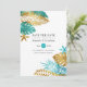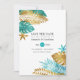 Casamento de folhagem tropical de folha de cor azul-turquesa e folha de ouro aquosa, exceto o cartão de data projetado para ser rápida e facilmente personalizado de acordo com as suas especificações de evento.