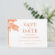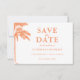 Casamento Tropical da Árvore de Palma Elegante Salve a Data. Apresentando uma palmeira laranja "Peach Fuzz" e uma tipografia na moda, esta design combina encanto tropical com elegância moderna. Perfeito para casamentos de praia, celebrações de ilhas e núpcias costeiras, ele captura o calor e o romance de seu dia especial. Impresso em papel premium com detalhes personalizáveis, esta opção Salvar a data é uma bela maneira de anunciar seu casamento. Ideal para casais planejando um casamento na praia por pôr do sol, fuga tropical, ou celebração elegante à beira-mar.