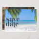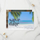 Compartilhe um vislumbre do seu dia de casamento com este Casamento Tropical de Praia Palm Tree salve a data - um sussurro do paraíso que aguarda seus convidados na sua celebração de casamento na praia de destino. Personalize com seus detalhes de casamento e uma de suas fotos favoritas de noivado no verso.
