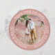 Anuncie a alegre notícia do seu noivado e do próximo casamento com uma única fotografia redonda personalizada que salve as datas. As duas imagens e todos os textos deste modelo de convite são simples de personalizar. (DICA DE IMAGEM: Uma maneira fácil de centralizar uma foto exatamente como você deseja é recortá-la antes de carregá-la no site do Zazzle.) O rosa-rosa-ouro e o design branco apresentam duas imagens do casal engajado, a moderna tipografia minimalista moderna e a caligrafia com escrita manual na moda. Esta única nota de anúncio é uma maneira elegante e divertida de informar os amigos e a família da sua próxima celebração especial. Parabéns para a noiva e o noivo!