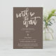 Para quando as circunstâncias significam que, infelizmente, é necessário alterar a data do seu casamento, esta é uma maneira conveniente de informar aos seus convidados a mudança de planos e a nova data o mais rápido possível. Este design tipográfico tem um elegante texto em cream no topo Vale a Pena Esperar com um motivo de coração. O resto do texto em creme, você pode personalizar facilmente, sobre um fundo marrom e creme coordenado no verso. As cores do texto e do fundo em ambos os lados podem ser alteradas se desejar, através da opção Personalizar Mais.