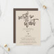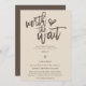 Porque quando as circunstâncias significam que infelizmente é necessário que você remarque a data do seu casamento, esta é uma maneira conveniente de deixar seus convidados saberem sua mudança de planos e nova data o mais rápido possível. Este design tipográfico tem uma elegante escrita marrom no topo Worth the Wait com um motivo cardíaco. O resto do texto em marrom, você pode facilmente personalizar, em um fundo creme e coordenar marrom no fundo. As cores do texto e do plano de fundo em ambos os lados podem ser alteradas se você desejar por meio da opção Personalizar mais.