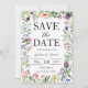 Casamento elegante de flores silvestres salve a data em verde-sábio e branco, com um design de data ousada, um roteiro e fontes serif. A design apresenta flores bonito e folhas verdes com pequenas borboletas. Personalize com seu próprio texto. Ideal para um primavera floral ou verde ou casamento de verão. Verifique a coleção para produtos de papelaria de suíte correspondentes.