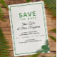 Limpos, modernos e clássicos, esses Cartões salve a data apresentam frentes de palma tópicas e sotaques verdes. Cada campo é perfeitamente personalizável para dizer exatamente o que você quer! A coleção de coordenação de cheios está disponível.