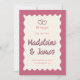 Casamento inspirado pela Retro, salve o convite de data em uma paleta colorida ousada de rosa e vermelho, uma moldura ondulada, com fontes de estilo manuscrito, uma ilustração de corações bonitinhos e "nós dizemos sim!" Este é um modelo de salvamento de data totalmente personalizável, todas as cores podem ser alteradas na ferramenta design, se você quiser.