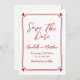 Casamento Vermelho Desenhado à Mão Salve a Data Convite de Casamento.Este simples minimalista italiano ou francês inspirou salvar o cartão de data apresenta um design limpo com uma sutil trama desenhada à mão com corações vermelhos em cada canto. O quadro circunda suavemente suas informações de casamento, usando uma simples mistura elegante de scripts e fontes de estilo manuscritas, todas em vermelho contra um fundo branco. No verso, você encontrará um monograma personalizado das iniciais do casal. Este design oferece uma nova aparência divertida com um toque de charme e é totalmente personalizável para se adequar ao seu estilo. Perfeito para casais que querem uma tendência ainda subestimada. Disponível como cartão impresso ou download digital para fácil compartilhamento ou impressão local.