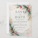 Neste Natal, o casamento no inverno que salva a carteira personifica a elegância rústica com a design de aquarela encantadora, apresentando um quadro botânico de frutas vermelhas e verde de inverno em arranjo botânico boêmico. Perfeito para casais que amam arte e designs únicos, temas elegantes, rústicos, boêmicos e românticos do país, isso salva a modelo da data é uma escolha ideal para casamentos e casamentos no inverno de Natal. Faça seu dia especial inesquecível com nossos convites para casamentos no inverno e opções de cartas de Natal, cada um projetado para trazer a magia da temporada para seu elegante casamento de Natal.