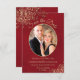 Estas belas cartas são uma forma excelente de deixar seus amigos e família saberem salvar a data do seu próximo casamento. Eles apresentam um criminoso marmoreado vermelho e design dourado com sua foto em um quadro em forma oval cercado por fritos de folha de alumínio de ouro e letras de rico com seus nomes, data de casamento e local. O verso tem um gráfico bonito de "lápis nós in" com espaço para uma nota que pode incluir um site onde seus convidados podem obter mais informações.