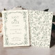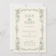 Anuncie seu dia especial num estilo sofisticado com nosso casamento vitoriano vitoriano da Elegante Sage Verde Salve as Datas. Criados com um intrincado design floral e uma paleta de cores verdes, eterno, essas cartas são uma combinação perfeita de estética clássica e contemporânea. A frente do cartão apresenta os detalhes essenciais do seu evento, adornada com uma bela fronteira floral. Ao contrário, um elegante padrão floral complementar. Incorpore seu anúncio de casamento com um toque elegante que dá o tom para seu grande dia!