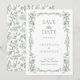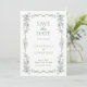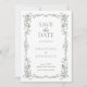 Anuncie seu dia especial num estilo sofisticado com nosso casamento vitoriano vitoriano da Elegante Sage Verde Salve as Datas. Criados com um intrincado design floral e uma paleta de cores verdes, eterno, essas cartas são uma combinação perfeita de estética clássica e contemporânea. A frente do cartão apresenta os detalhes essenciais do seu evento, adornada com uma bela fronteira floral. Ao contrário, um elegante padrão floral complementar. Incorpore seu anúncio de casamento com um toque elegante que dá o tom para seu grande dia!
