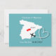Um divertido save the date para casais que se casam na Espanha continental com um mapa de silhueta branca da Espanha em azul turquesa com corações de amor vermelhos e muito fácil de personalizar com seus nomes e mensagem pessoal