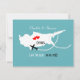 Um divertido salvar a data para casais que se casam na bela Ilha de Chipre com um mapa de silhueta branca de Chipre em azul turquesa com doces corações de amor vermelhos e tão fácil de personalizar com seus nomes e mensagem pessoal
