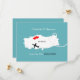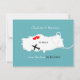 Um divertido save the date para casais que se casam na Turquia com um mapa de silhueta branca da Turquia em azul turquesa com corações de amor vermelhos doces e muito fácil de personalizar com seus nomes e mensagem pessoal