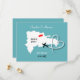 Um divertido salvar a data para casais que se casam na República Dominicana, Hispaniola com um mapa de silhueta branca em azul turquesa com corações de amor vermelhos doces e muito fácil de personalizar com seus nomes e mensagem pessoal