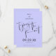 Convide seus convidados para salvar sua data de casamento com este design moderno com um elegante Casando de guião manuscrito pelo centro. A palavra "e" entre seus nomes está em um script set correspondente. O resto do texto pode ser facilmente personalizado. O plano de fundo de ambos os lados está em azul lavanda Você pode mudar as cores do texto e do plano de fundo para melhor adequá-lo ao seu esquema de cor do casamento se quiser através da opção personalizar mais. Se precisar de ajuda, por favor, me mande.