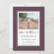 Cassis Save The Date Noivado Photo Wedcard design com de de cartão com fotografia apresenta uma bela borda chic em chassis roxo que inclui uma elegante borda branca de petite. A caligrafia e a escrita são cinzas de carvão sobre fundo branco. Um modelo moderno para data e ano complementa o design único de caligrafia. [NOTA: a exibição da data de casamento, conforme mostrado, usa o bar vertical ou a linha que pode ser encontrada acima do \ em um teclado ou no seu dispositivo inteligente com os caracteres especiais. Você também pode personalizar com qualquer outro personagem de sua escolha.] Personalize com sua foto de noivado favorita para anunciar seu grande dia! (Para melhor posicionamento da sua imagem, use uma ferramenta de edição de fotos para centralizar e cortar ANTES de carregar no site do Zazzle.) Outros designs disponíveis nesta suíte. Envie um email para invitationsuites@gmail.com com perguntas ou solicitações personalizadas.