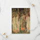 Cartão com tapeçaria de William Morris O Arme e a Partida dos Cavaleiros (1891-4). Os Cavaleiros da Mesa redonda sentam-se em seus cavalos em uma floresta fora de um castelo. Mulheres bonitas dão os cavaleiros suas armas e escudos. Um presente maravilhoso para entusiastas de Arthuriana e colecionadores vitorianos de arte.