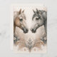 Você compartilha um amor por cavalos? Considere que este casamento salve o cartão de data. A frente apresenta dois cavalos cativantes em exibição decorativa. Guarde os detalhes da data no verso do cartão. Pastel e cores elegantes. Use a modelo para alterar o texto de acordo com as suas necessidades.