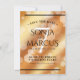 Este cartão é a maneira simples, mas bela, de lembrar a família e os amigos de salvar a data para as comemorações do aniversário do casamento de cobre 7. A inscrição elegante com um confete hexagonal num fundo de folha de cobre adiciona um toque memorável para esta ocasião especial e marco. Personalizar conforme desejado. Design © W.H. Sim. Mais informações em zazzle.com/expressionsoccasions