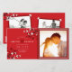 Flores de Cerejeira Brancas/Vermelhas ou Sakura de Primavera e Cartão de Anúncio de Save the Date de Casamento Chinês Duplo Lado com Felicidade Dupla Moderna.