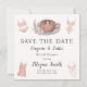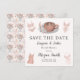 Este encantador Save the Date define o tom para um chá de noiva de lingerie e cafés, apresentando lingerie de casamento elegante, um café aconchegante e flores boho em um design elegante. O verso apresenta um padrão caprichoso de bolos de casamento, peças delicadas de lingerie, flores e muito mais.