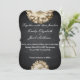 Uma bela flor margarida no fundo com um padrão de quadro negro dá uma perspectiva natural no design do convite para o casamento. Um convite de casamento que aparece é uma margarida de ouro do Chalkboard Blackboard inspirada em design com texto branco.