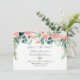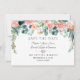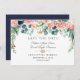 Design elegante, romântico, com uma linda cor d'água, cor rosa-rosa-pincel, pêssego e flores brancas em volta de uma moldura verde quebrada, divisor floral, tudo sobre fundo branco; no fundo da meia-noite azul-colar e buquê floral. Use Personalizar este modelo para adicionar suas informações. Para obter itens correspondentes, visite minha Coleção de Peônias Brancas Espelhadas.